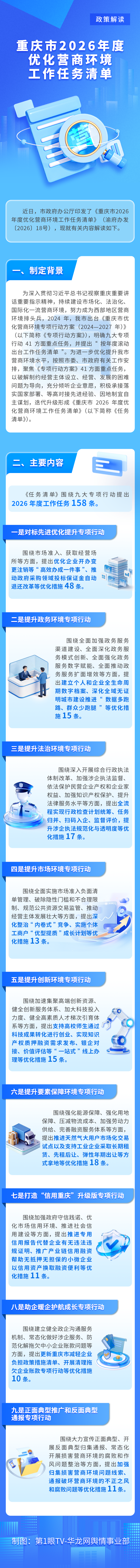 近日,市政府办公厅印发了《重庆市2026年度优化营商环境工作任务清单》(渝府办发〔2026〕18号),现就有关内容解读如下。
