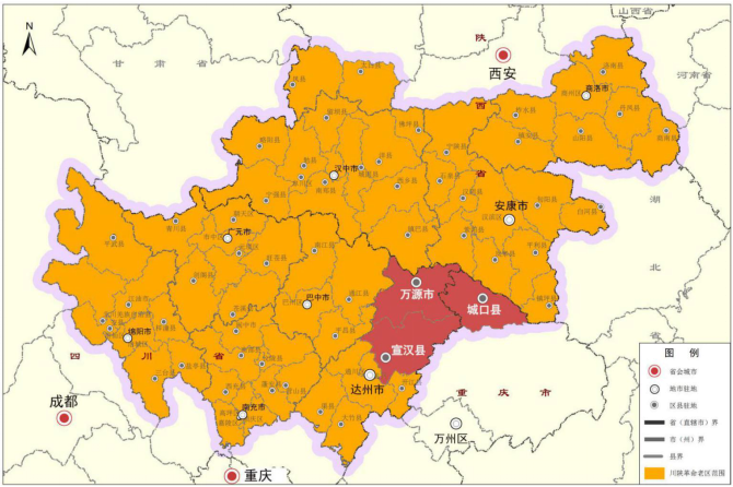 川陕革命老区中的城宣万区位示意图